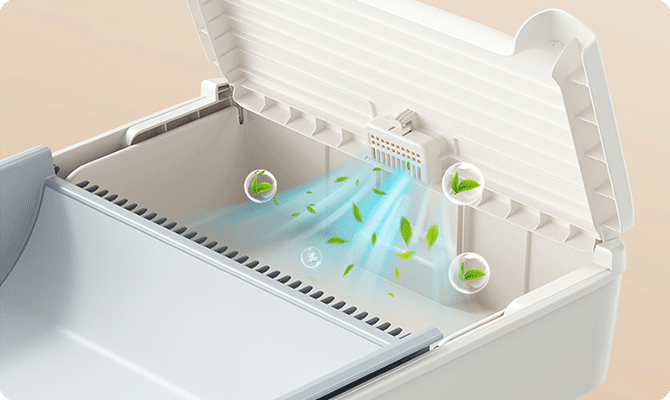 Enclosed waste bin with built-in deodorizer, lasting up to 1 month per pack
